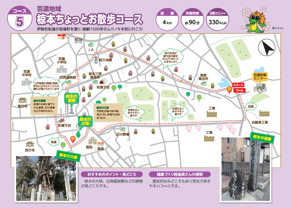 それぞれ1キロメートル未満~4キロメートルのコースで、これからウオーキングを始めようと思っている人や、小さなお子さんのいるご家族でも挑戦しやすくなっています。