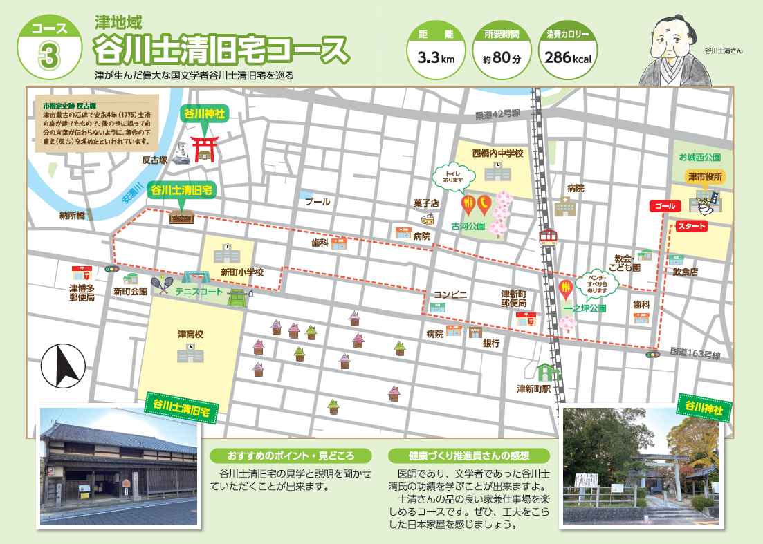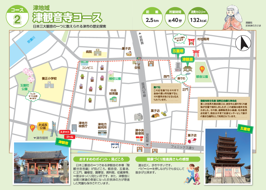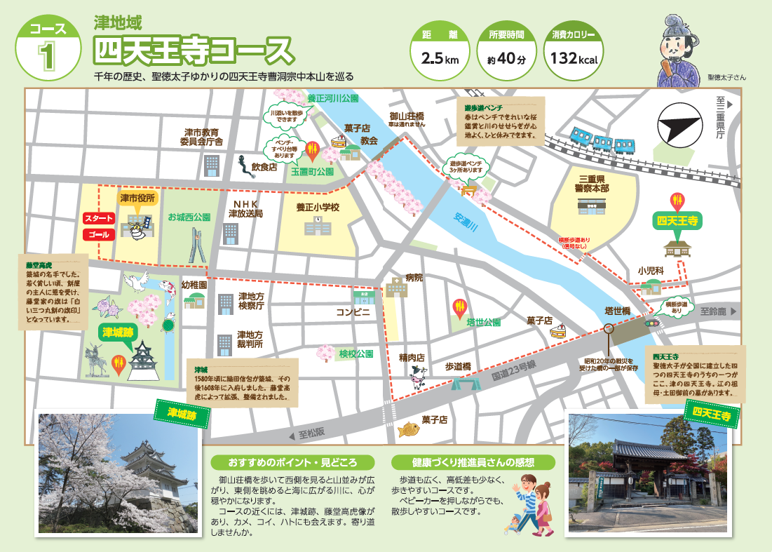 ウオーキングマップ「ちょい歩きマップ」を活用して、津市の歴史や街並みを楽しみながら、気軽に健康づくりをしてみませんか。