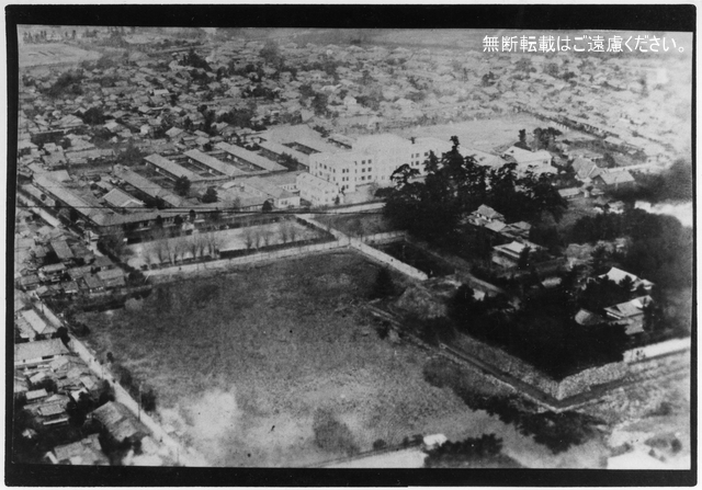 内堀を隔てた東側、旧藩校有造館跡地には養正学校がみえます。