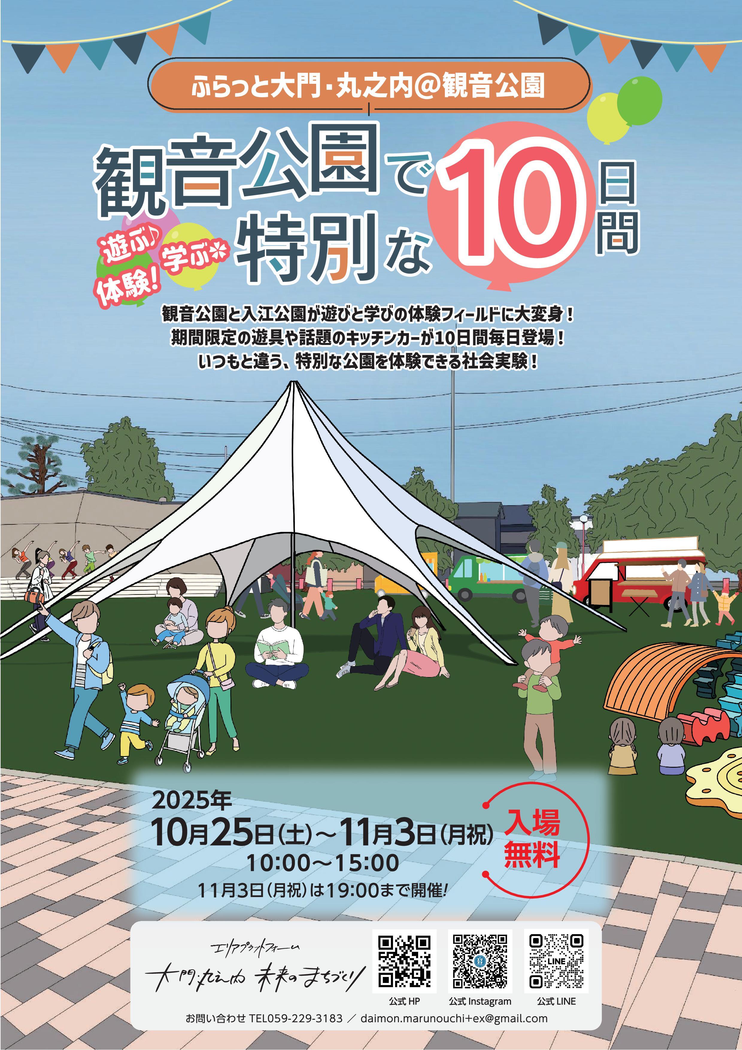 「観音公園・入江公園」を魅力的な空間に設える社会実験「ふらっと大門・丸之内@観音公園」を実施します!