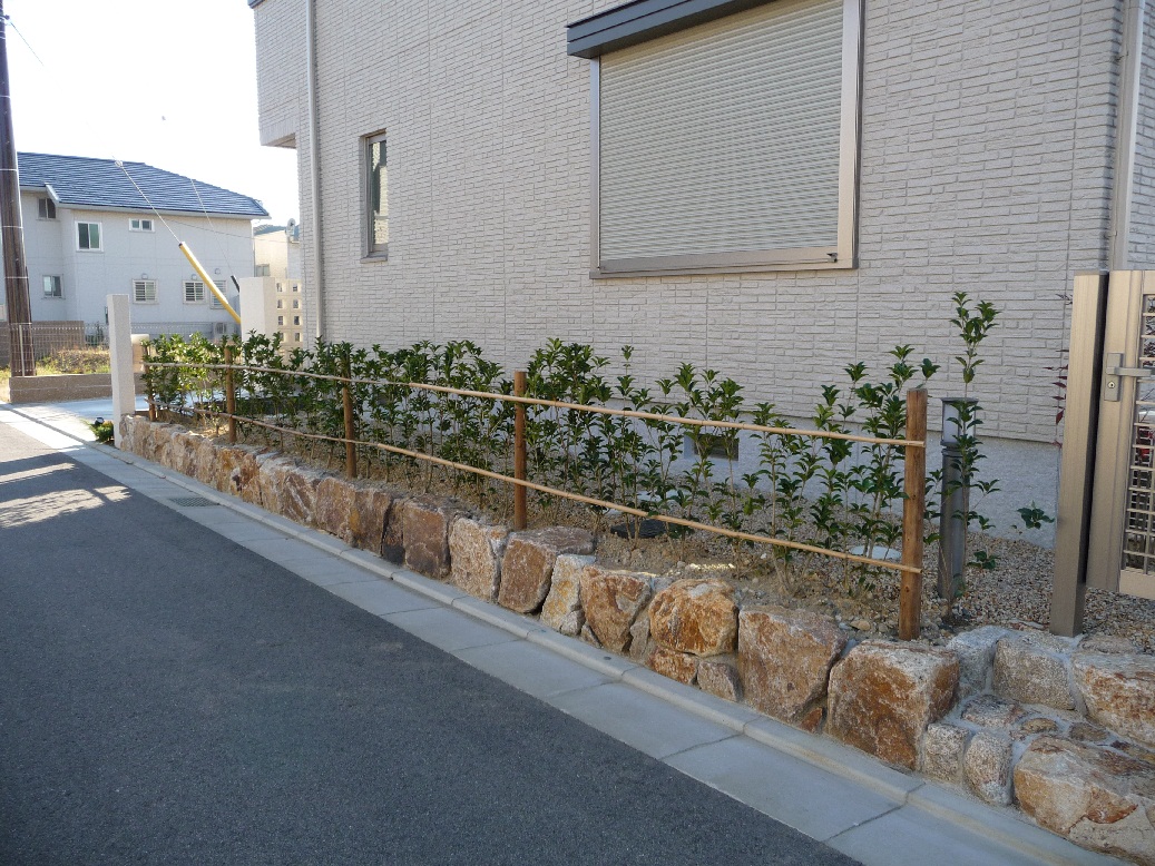 - 生け垣と道路の間に、塀やフェンスなどを設置し、道路からの視界を遮断しないこと。