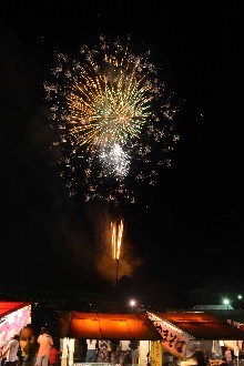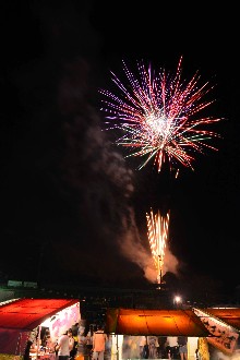 平成30年7月21日、市美里庁舎前駐車場で美里夏まつりが開催されました。 夏まつりの最後には、花火が連続して打ち上がり、訪れた皆さんは歓声を上げながら、さまざまに変化する夜空の色彩を楽しんでいました。