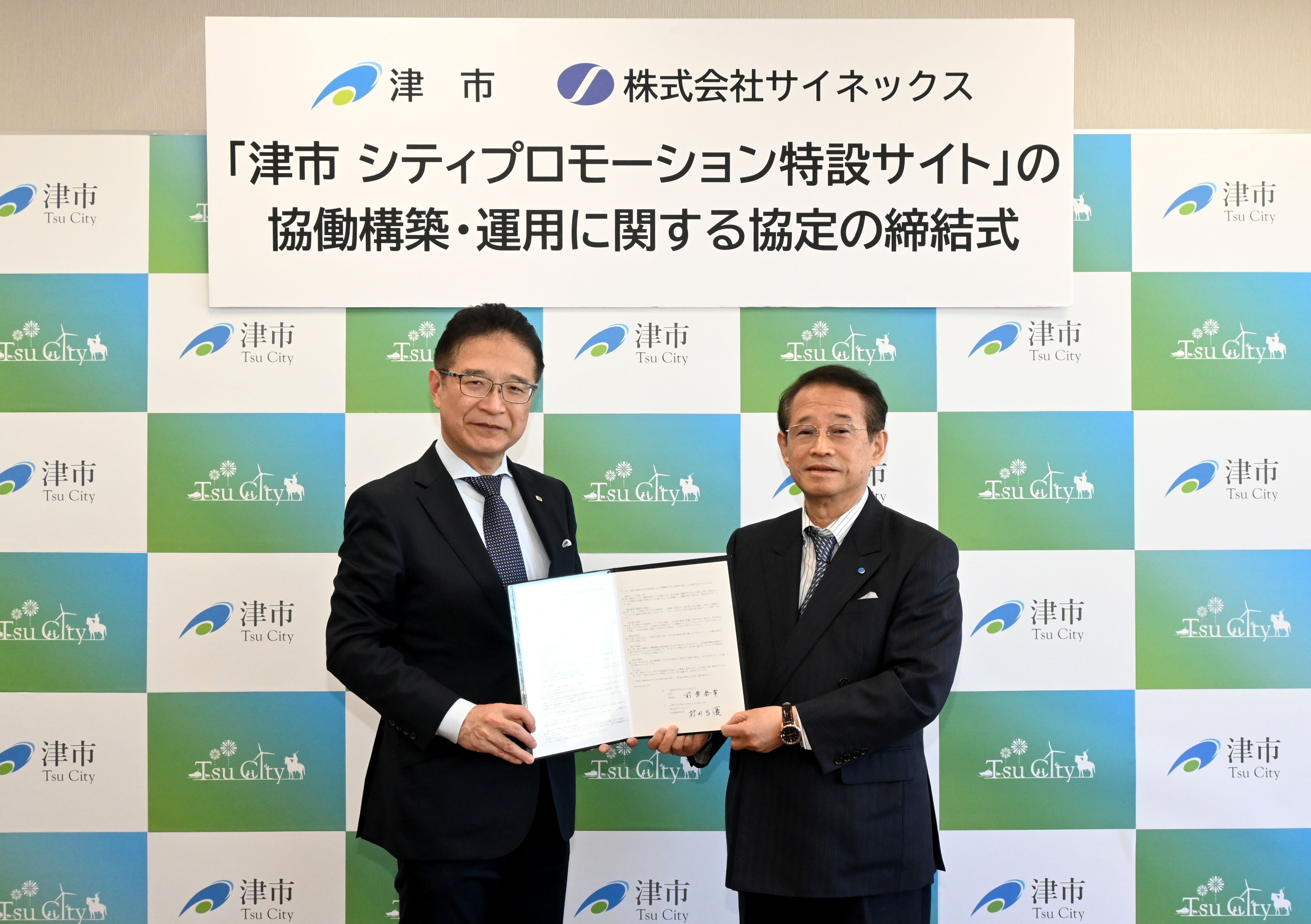 津市の準オフィシャルサイトとして「津市シティプロモーション特設サイト」を構築・運用するため、津市と株式会社サイネックスとの間で、協定を締結しました。