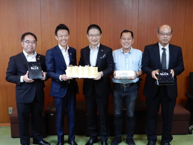 有限会社お焼屋が平和製粉株式会社の三重県産小麦「アヤヒカリ」と株式会社鳥鹿養鶏園のこだわり卵「パイエッグ」を使用してリニューアルした「三重銘菓 地上の星」のPRと「津がんばるマルシェ」への出店報告にお越しいただきました。「三重銘菓 地上の星」は津市のふるさと納税の返礼品としてもお求めいただけます。
