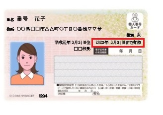 マイナンバーカードの有効期限は赤枠内をご確認ください。