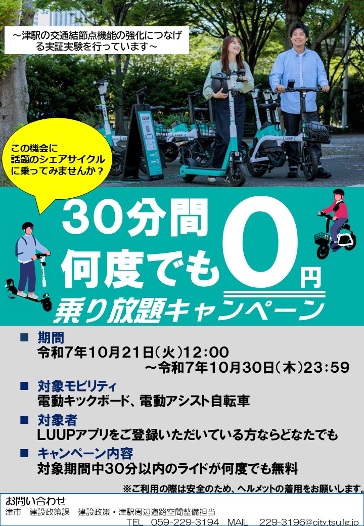 津駅は津市の交通結節点であり、目的地への移動支援や回遊性の向上を目指しております。この実現のため、移動手段の需要を確認する必要があるため、電動アシスト自転車に加え、近距離の移動の需要が高いと言われる特定小型原動機付自転車を、新たな移動手段として導入しました。